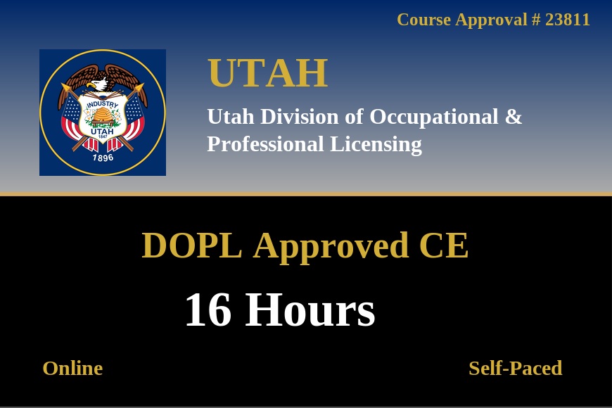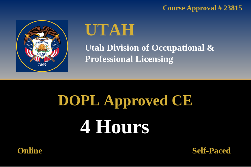 The Utah Division of Occupational and Professional Licensing (DOPL) provides a list of all approved continuing education providers and courses on their official website. It is the licensee's responsibility to ensure the course they take is approved by DOPL before completing it.